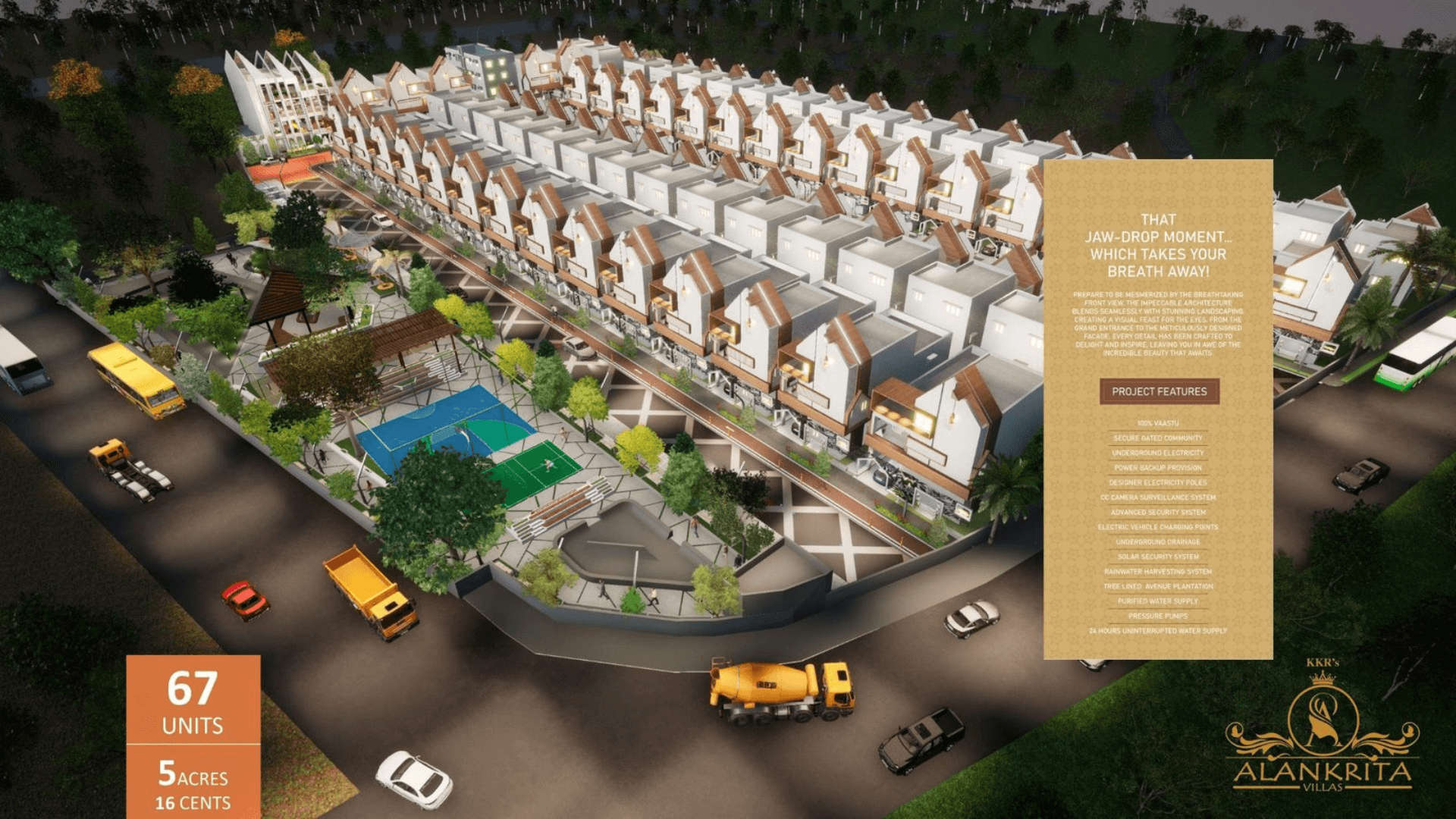 Strategically located, KKR Alankrita Villas provide easy access to prominent landmarks, educational institutions, healthcare facilities, and commercial centers, ensuring convenience and a hassle-free lifestyle.